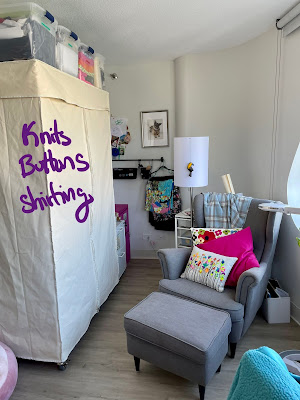 - My new sewing space is coming together quite nicely! It is split into 2 spaces- Upstairs which is mostly storage and downstairs which is the actual sewing space.